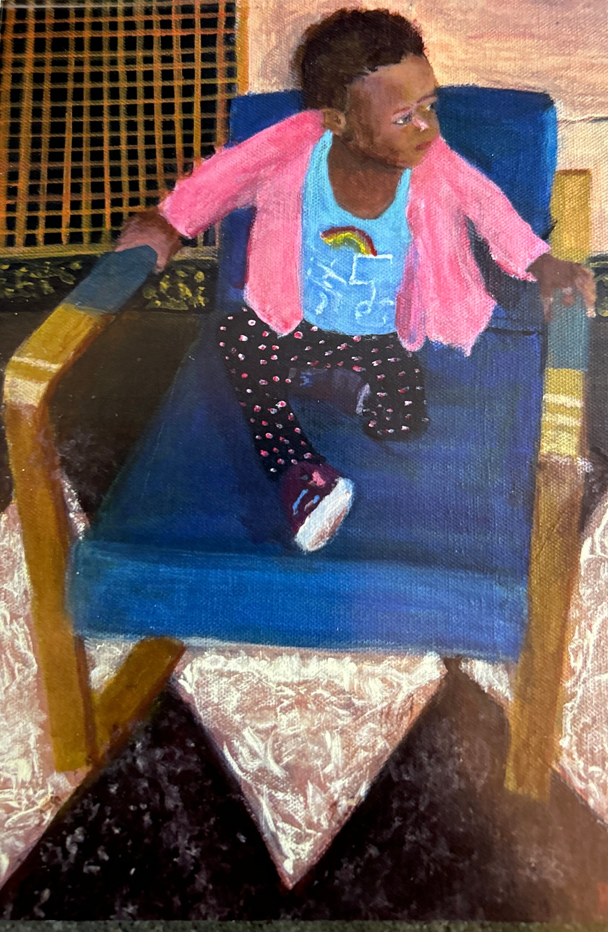 But it was Jeff’s holiday card to me and my husband Richard Kirsch, another lifelong political activist who introduced me to Jeff years back, that touched me. The painting on front is his own, an image of his precious granddaughter Kira sitting in a chair. Inside he writes: